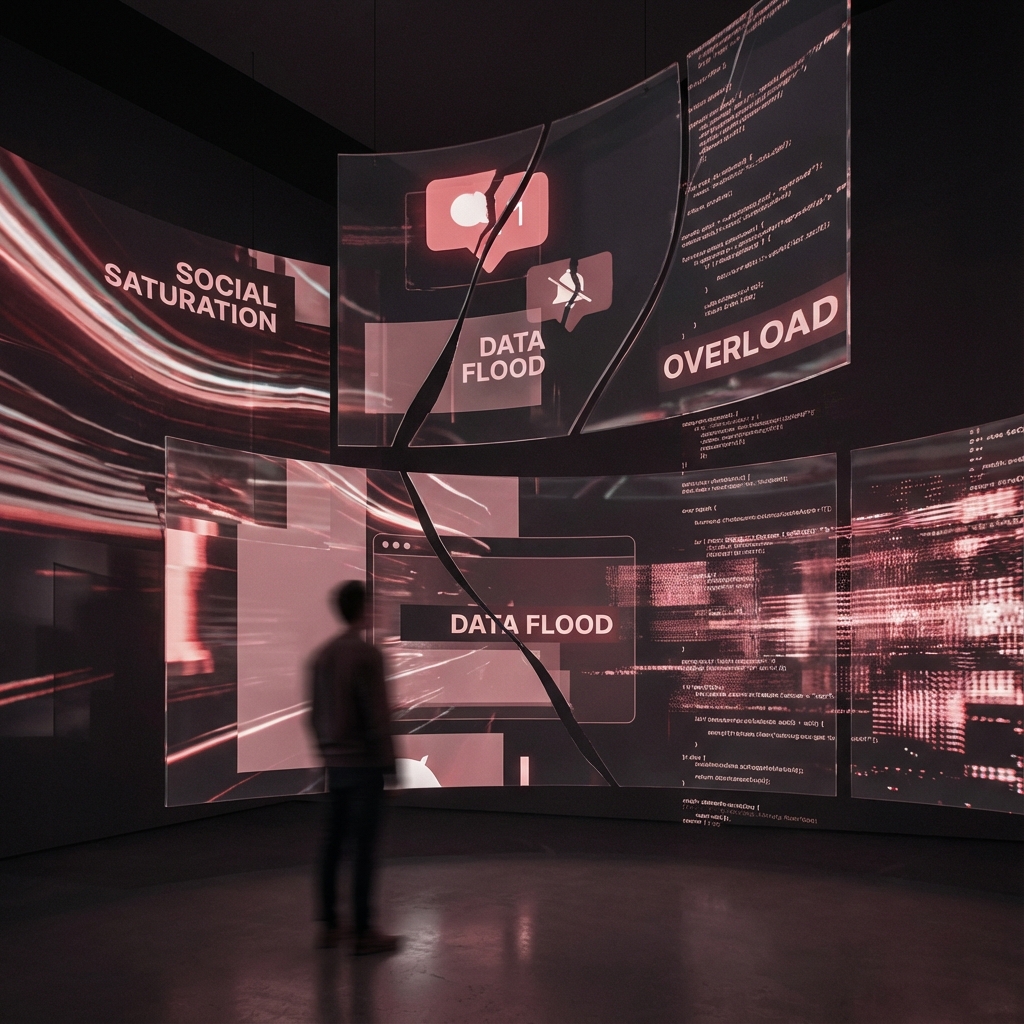 Family, high-school friends, and professional peers all jammed into one noisy interface.